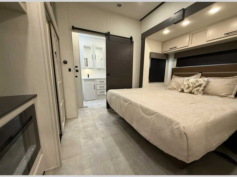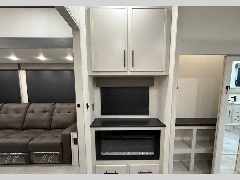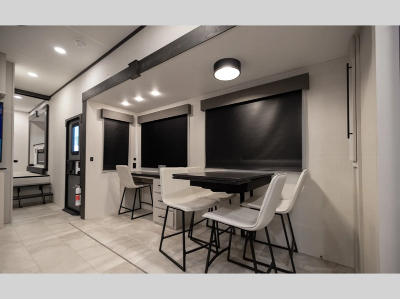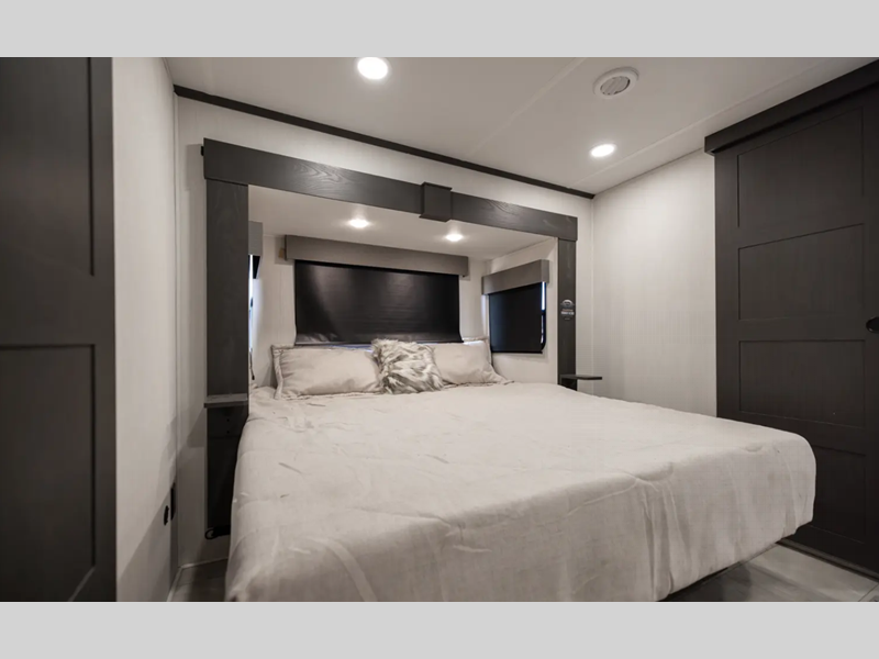 Each luxurious model features real wood cabinet doors, heat rated solid surface countertops throughout, blackout roller shades, and a king-size bed to provide the highest level of owner satisfaction. These fifth wheels also include an electric awning with LED lights outside, as well one-touch auto leveling, doggy d-ring, and a labeled universal docking center to have you set up to camp in no-time!